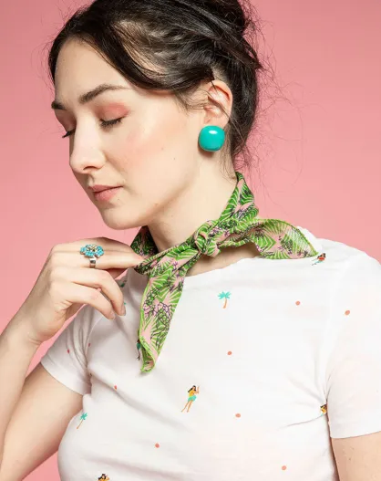Carré en Voile de Coton Fish rose/vert - 50x50 cm