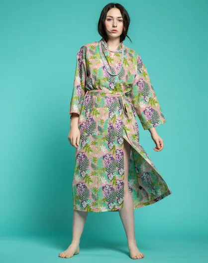 Peignoir Long imprimé rose