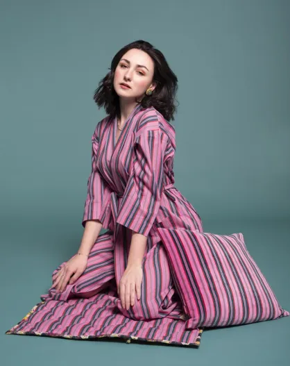 Peignoir long en Coton Burmese rose corail