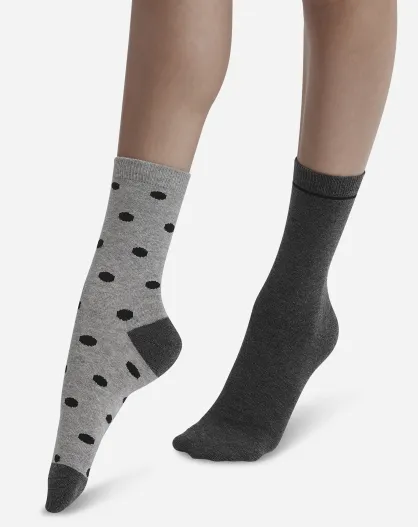 2 Paires de Chaussettes Coton Style Dots gris clair