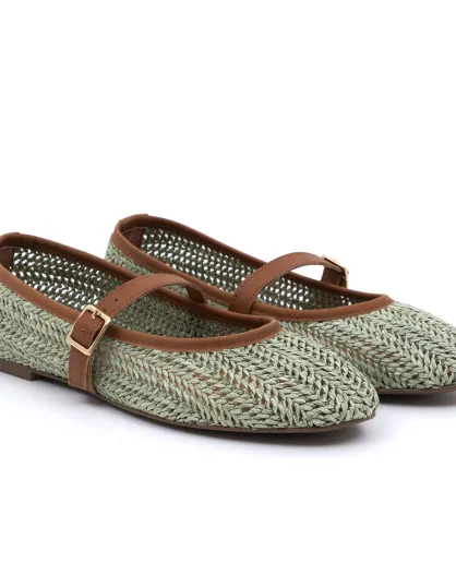Ballerines Bolero en raphia naturel vertes