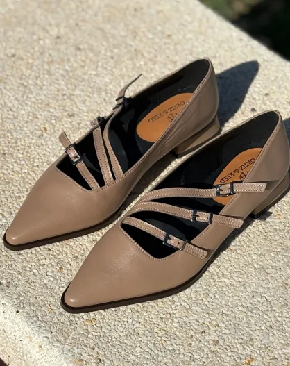 Ballerines Dely en cuir taupe - Talon : 5 cm