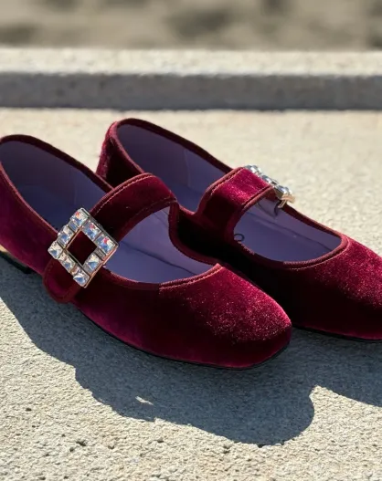 Ballerines en Velours de Cuir Charyssa bordeaux