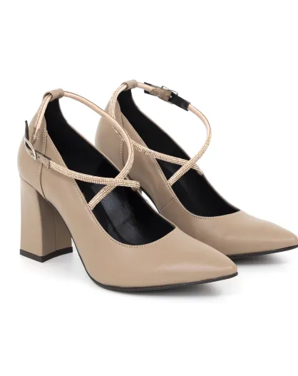 Escarpins Daisy en cuir beiges - Talon : 8 cm
