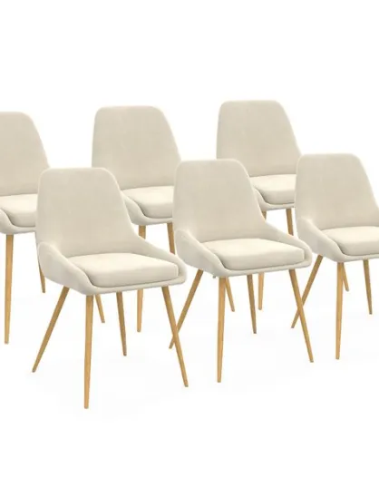 6 Chaises Olivia velours crème pieds métal effet bois - 47.5x54x79 cm