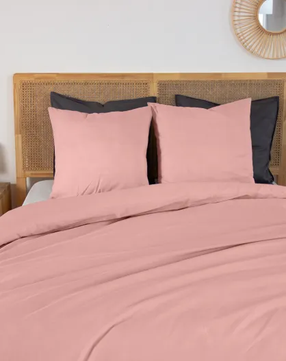 Parure housse de couette en percale de coton rose thé