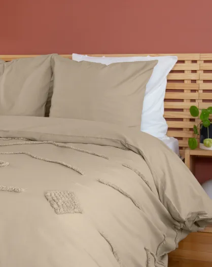 Parure de couette finitions Tuftées en coton lavé Akoe grise