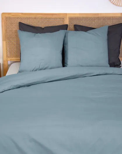 Parure housse de couette en percale de coton bleu fumé