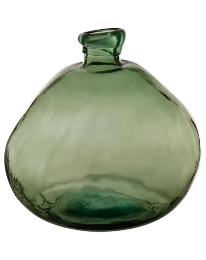Vase en verre soufflé à la bouche vert foncé - 25x25x30 cm