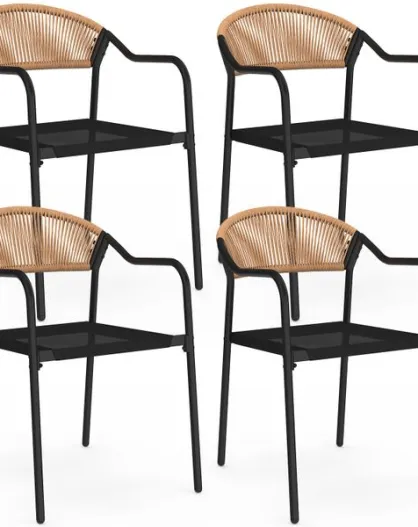 4 Chaises de jardin empilables en textilène blanc/beige - 51.5x68x84 cm