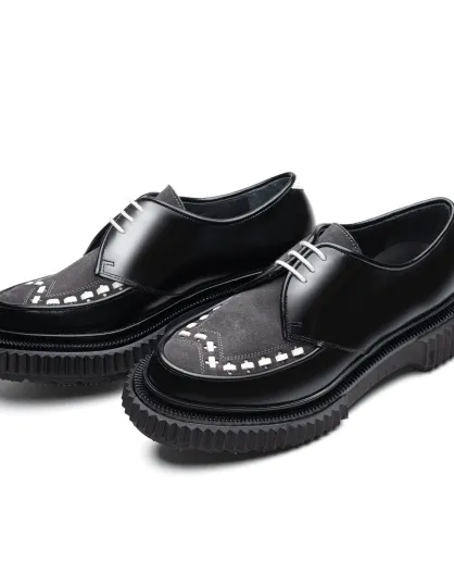 Derbies à lacets en cuir de veau et daim noir/asphalte/ivoire