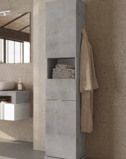 Ancona - Colonne de rangement salle de bain pivotant 2 portes +1 niche effet béton - 35x180x35 cm