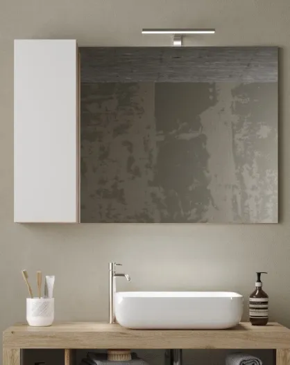 Ancona - Miroir Led avec Colonne Integrée 1 porte H30 cm chêne kadiz & Cachemire laqué brillant - 92x75x18 cm