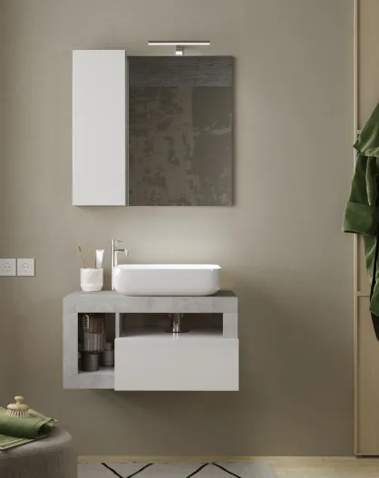 Ancona - Meuble salle de bain suspendu colorisBéton & laqué brillant - 1 Tiroir + 2 niches + vasque à poser - 79x47x49 cm