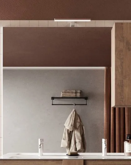 Ancona - Miroir Led avec Colonne Integrée 1 porte H30 cm chêne kadiz & Cachemire laqué brillant - 92x75x18 cm