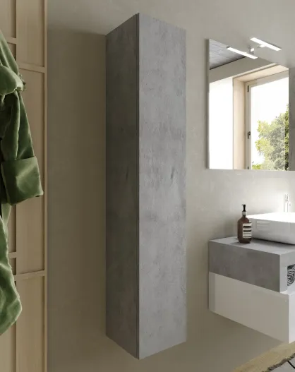 Ancona - Miroir Led avec Colonne Integrée 1 porte H30 cm Béton & laqué brillant - 78x75x18 cm
