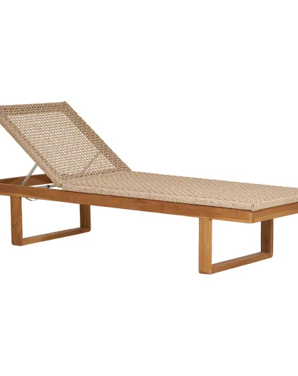 Chaise longue Derby teck/polyrotin naturel - 190x65x38 cm