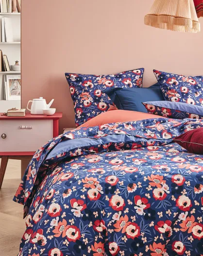 Alice - Parure de lit housse de couette + taies rectangles unie en coton bleu