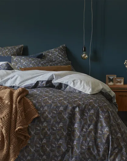 Bosquet - Parure de lit housse de couette + taies rectangles en percale de coton bleu
