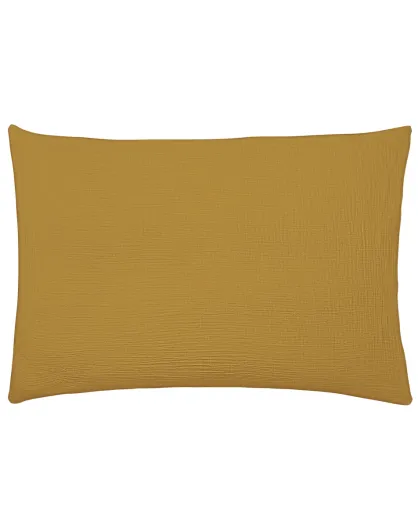 Tendresse - Taie d'oreiller unie en gaze de coton lavée jaune camel