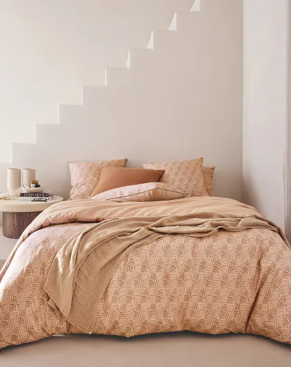 Hypnos - Housse de couette imprimée en percale de coton beige