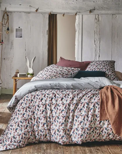 Bosquet - Drap plat imprimé en percale de coton bleu