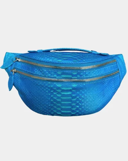 Banane en python avec doublure intérieure en coton Mike Deep Ocean - 34,5 x 14,5 cm