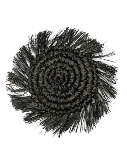 Le Sous-Verre Fringe Raffia - Noir - 16x16x1 cm