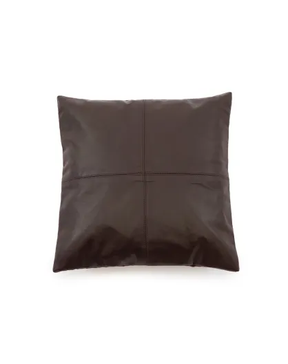 La Housse De Coussin Cuir Quatre Panneaux - Chocolat - 60x60x1 cm
