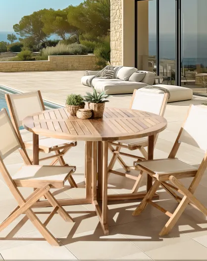 Ensemble de salon de jardin 4/6 personnes - 1 Table ronde papillon et 4 chaises beige