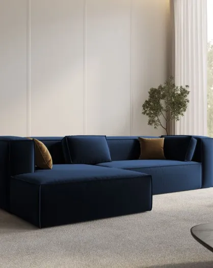 Canapé d'angle gauche Velours 5 places Madara bleu roi - 254x182x90 cm