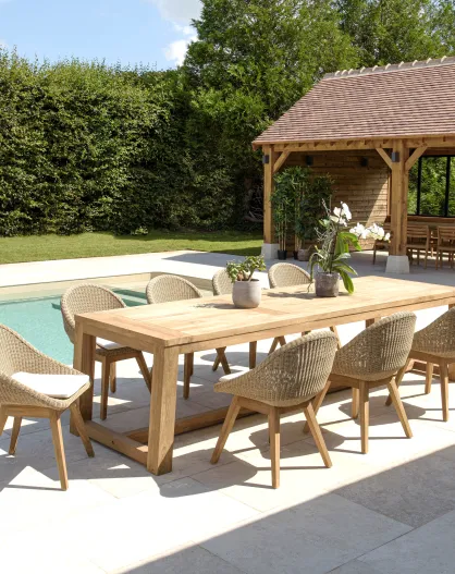 Ensemble de salon de jardin 8/10 personnes - 1 table à manger rectangulaire et 8 chaises de jardin - Beige et blanc