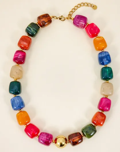 Collier Alani en Acier plaqué Or jaune & Turquoise doré/bleu clair