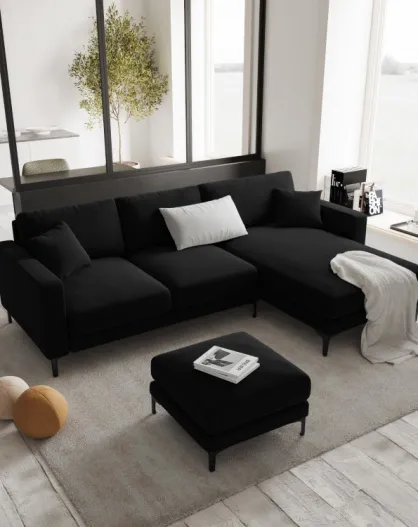 Pouf Velours Jasmin noir - 75x75x36 cm