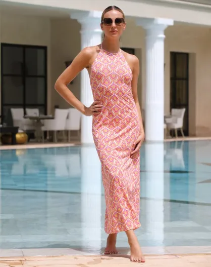Robe Longue corail rose / Positano