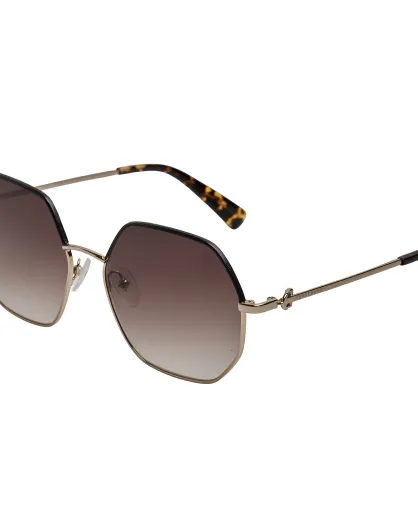 Lunettes de soleil Sylvianne hexagonales dorées noires