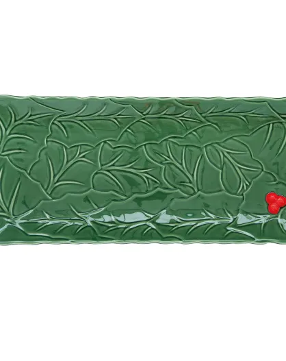 Plat de service en porcelaine HOLLY & BERRIES GREEN vert - 37x16,5 cm