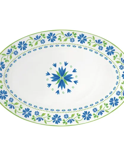 Plateau ovale en porcelaine FLOWERS GARDEN vert/bleu - 35x23,5 cm