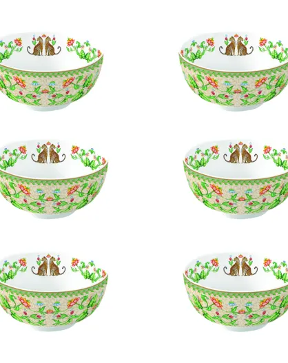 Lot de 6 bols en porcelaine JUNGLE VIBES verts - D.12 cm