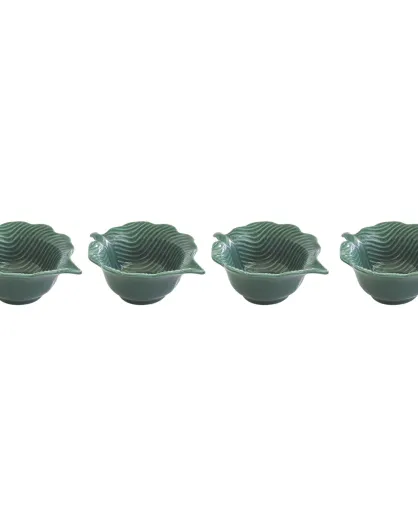 Lot de 4 mini bols en porcelaine en forme de feuille MADAGASCAR verts