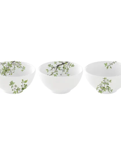 Lot de 3 bols en porcelaine NATURA blanc/vert - D.9,5 cm