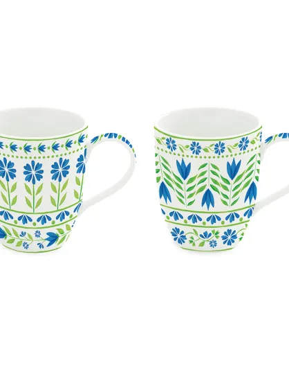 Lot de 2 tasses en porcelaine à motif FLOWERS GARDEN vert/bleu - 350 ml