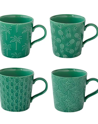 Lot de 4 tasses en porcelaine TROPICANA vertes - 380 ml