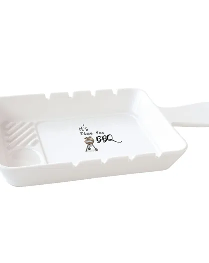 Assiette barbecue en porcelaine KITCHEN ELEMENTS blanche - 31,5x19 cm