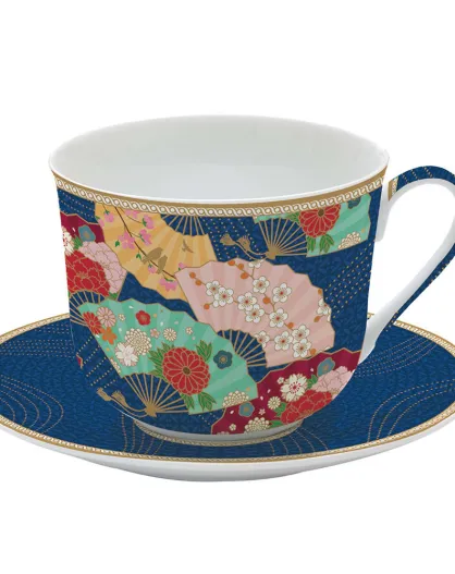 Tasse en porcelaine avec soucoupe KYOTO multicolore - 240 ml