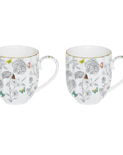 Lot de 2 mugs FLEURS ET PAPILLONS multicolores - 300 ml