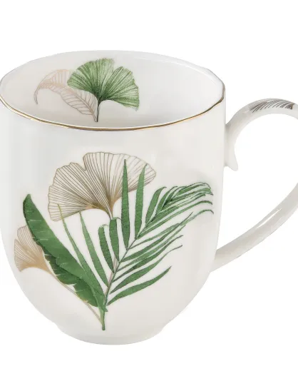 Mug en porcelaine EXOTIQUE blanc/vert - 300 ml