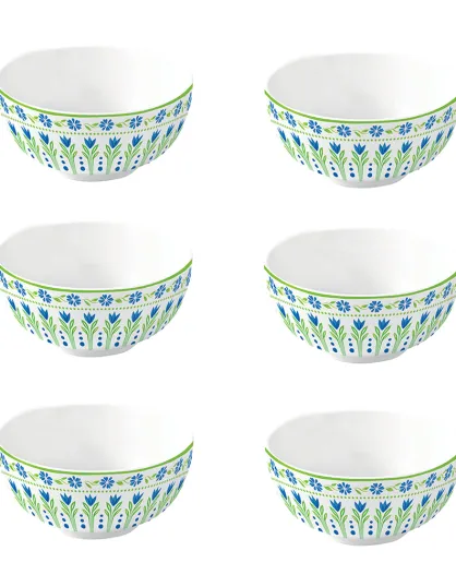 Lot de 6 bols en porcelaine FLOWERS GARDEN vert/bleu - D.12 cm