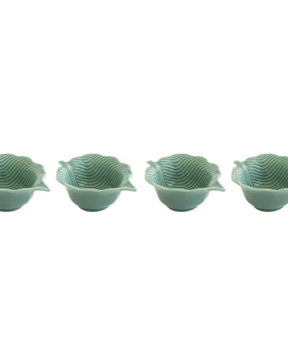 Lot de 4 mini bols en porcelaine en forme de feuille MADAGASCAR verts