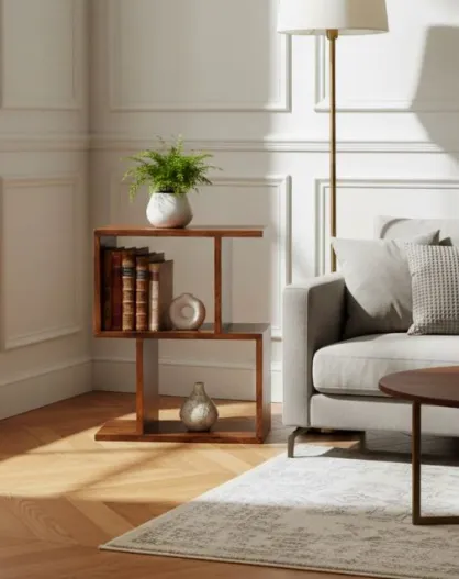 Bibliothèque asymétrique acacia greco miel - 75x30x185 cm